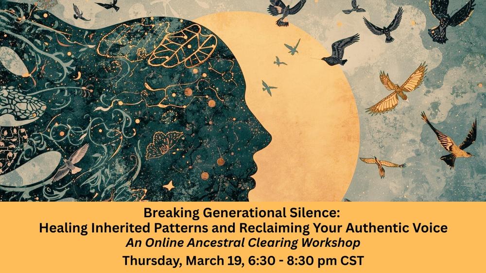 Join us Thursday, March 19 | 6:30–8:30 pm CST on Zoom (Replay included) for a guided workshop rooted in Ancestral Clearing. Together, we will explore inherited roles, silent loyalties, and relational patterns that may be shaping your voice, boundaries, and sense of self.